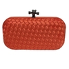 Bolsa Clutch composta de metal e cetim.